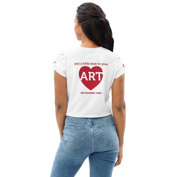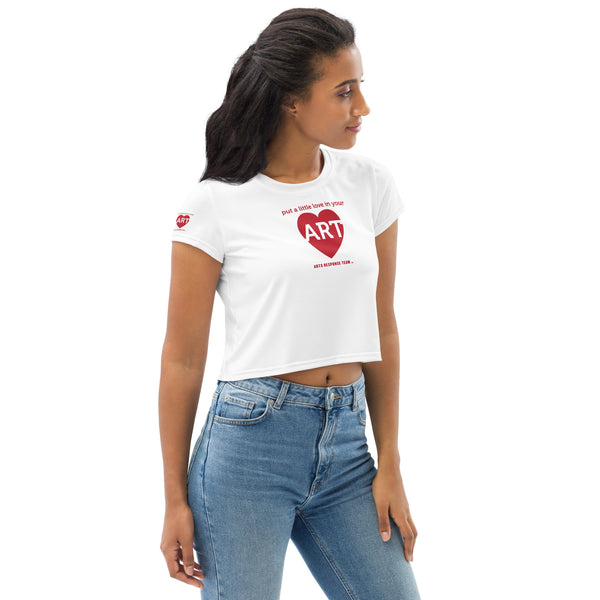 Looking for you next wardrobe favorite? Well, look no further because this crop tee is printed and sewn to fit you just right. To top that off, the original all-over design is definitely worth showing off, so don't hesitate to own one of these tees - they're meant to be adored.